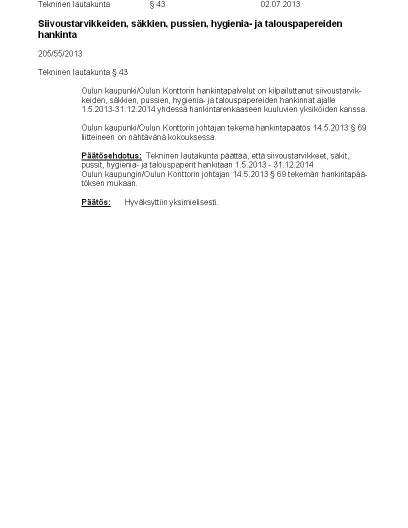 Pöytäkirja 02.07.2013 Pykälä 43