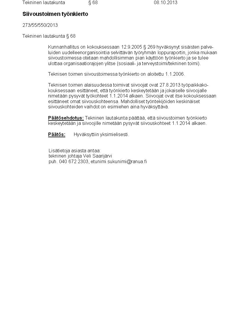 Pöytäkirja 08.10.2013 Pykälä 68