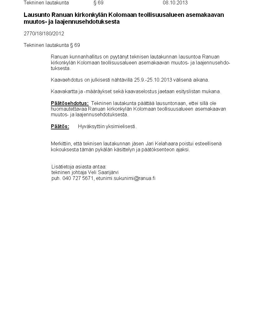 Pöytäkirja 08.10.2013 Pykälä 69