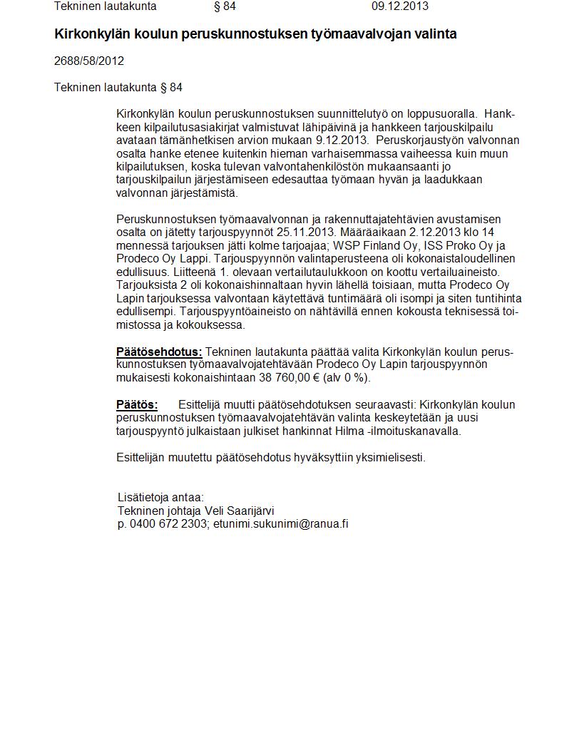 Pöytäkirja 09.12.2013 Pykälä 84