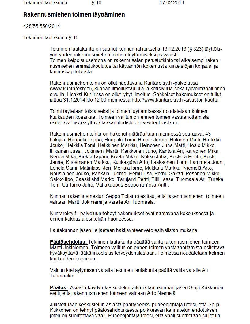 Pöytäkirja 17.02.2014 Pykälä 16