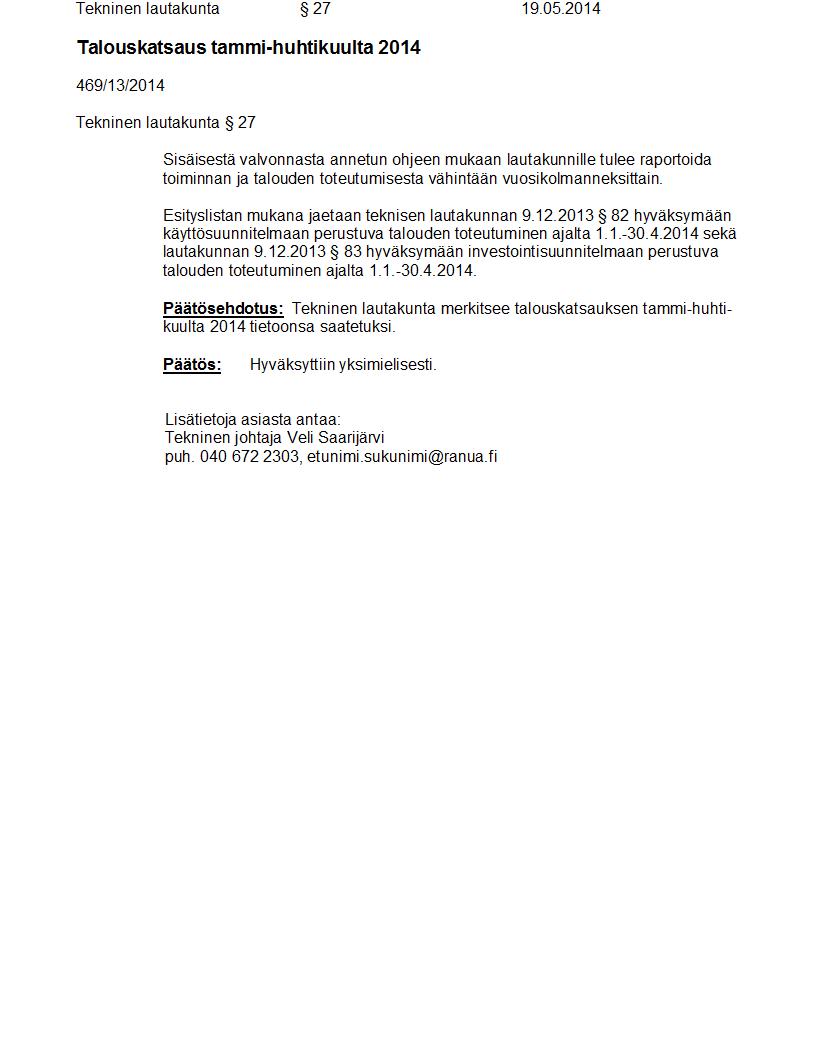 Pöytäkirja 19.05.2014 Pykälä 27