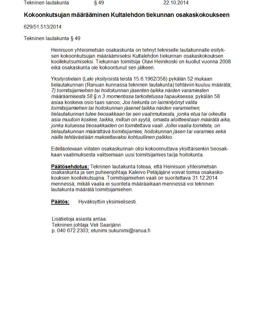 Pöytäkirja 22.10.2014 Pykälä 49