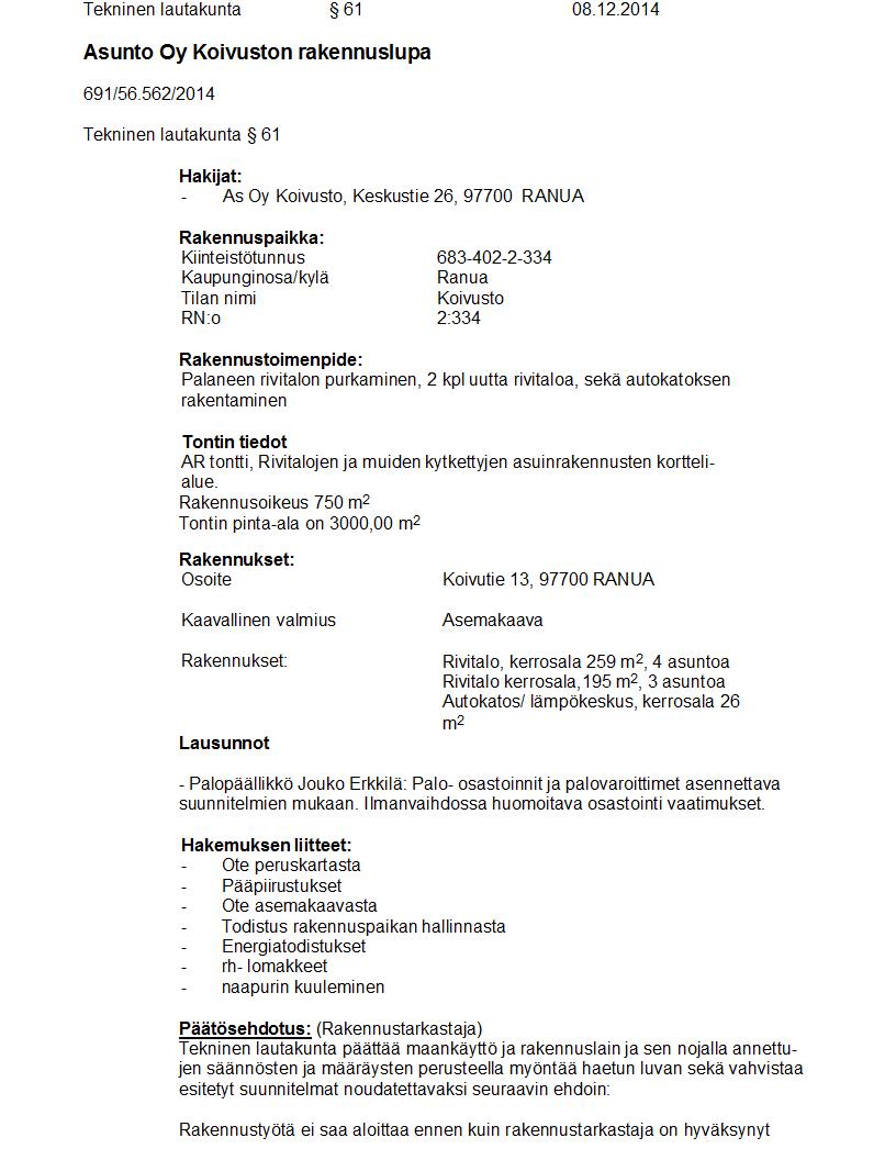 Pöytäkirja 08.12.2014 Pykälä 61