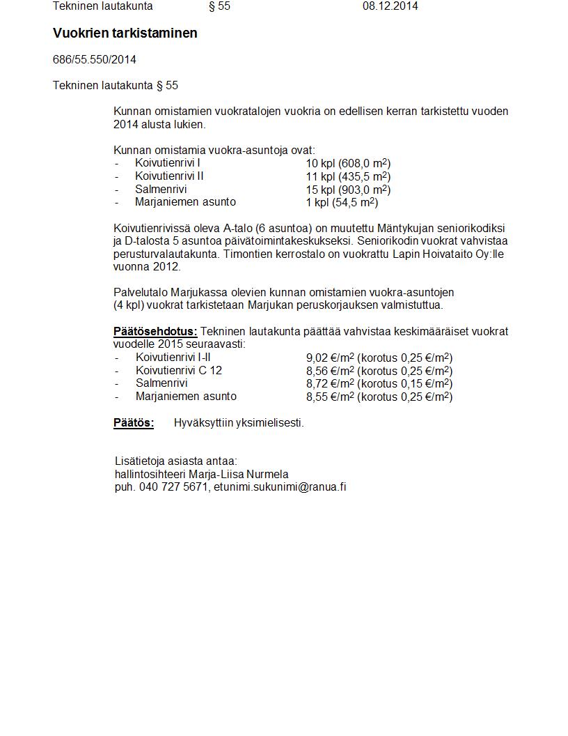 Pöytäkirja 08.12.2014 Pykälä 55