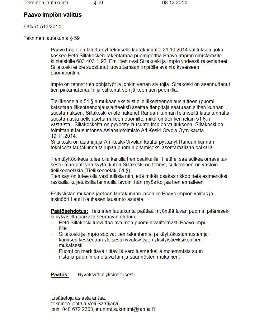 Pöytäkirja 08.12.2014 Pykälä 59