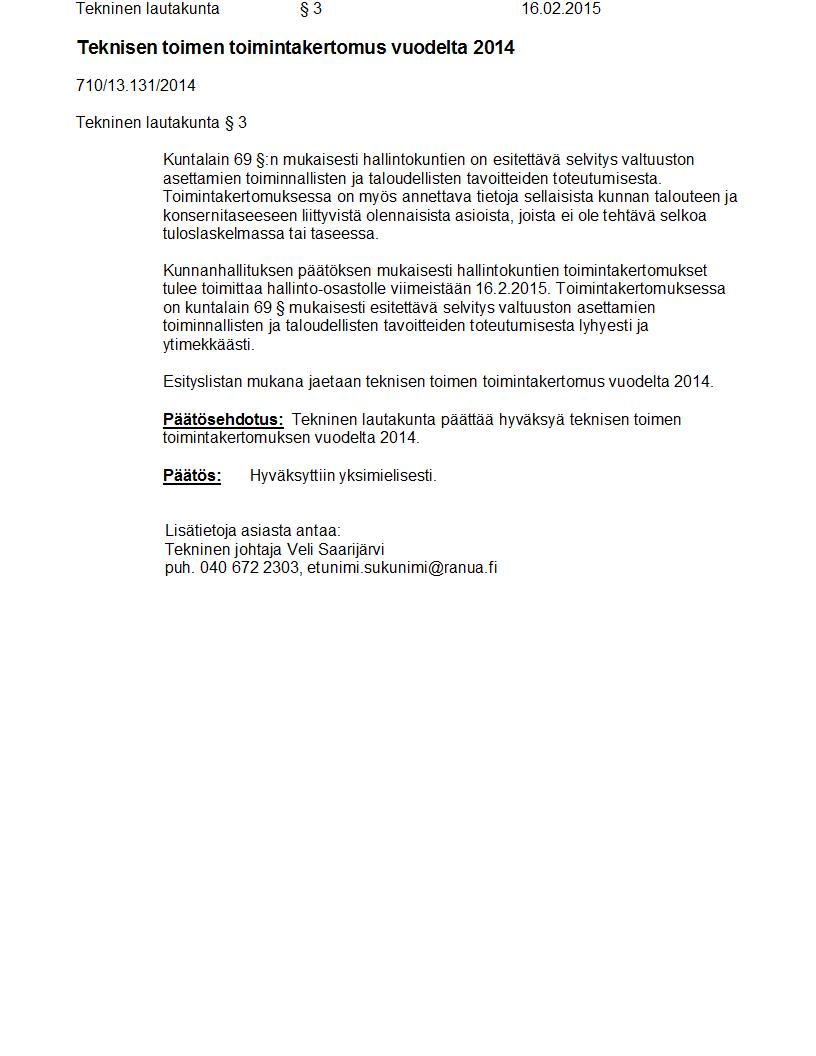 Pöytäkirja 16.02.2015 Pykälä 3