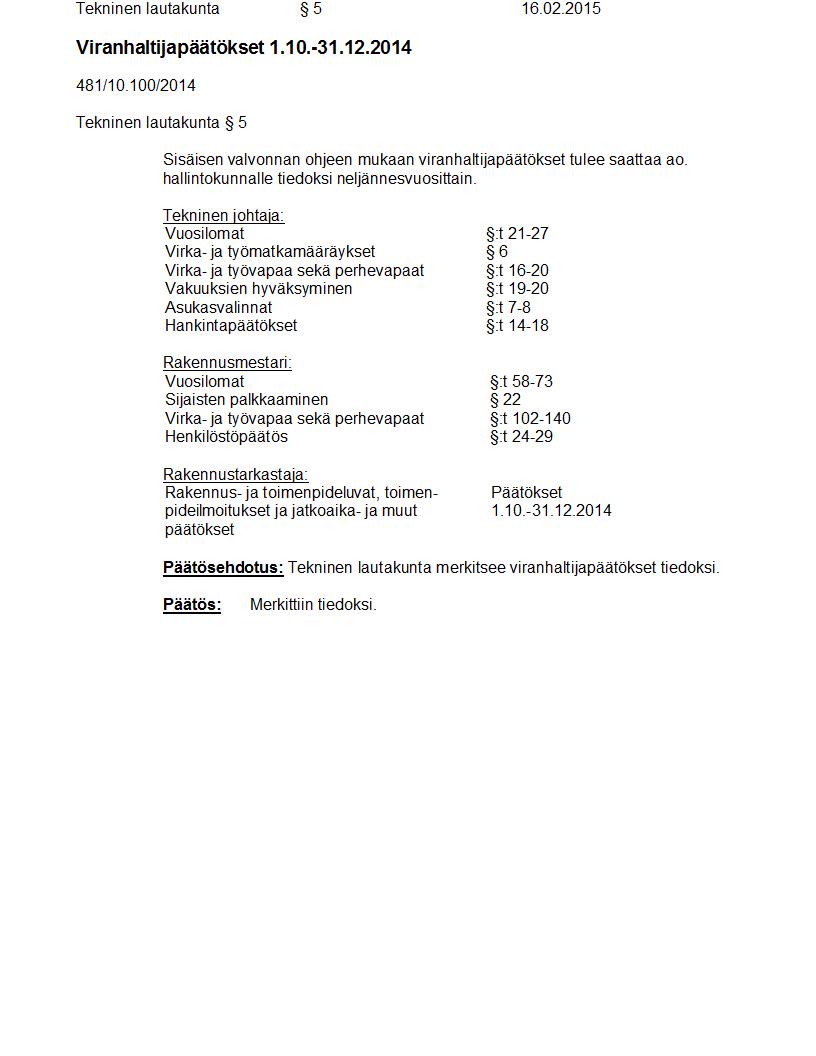 Pöytäkirja 16.02.2015 Pykälä 5