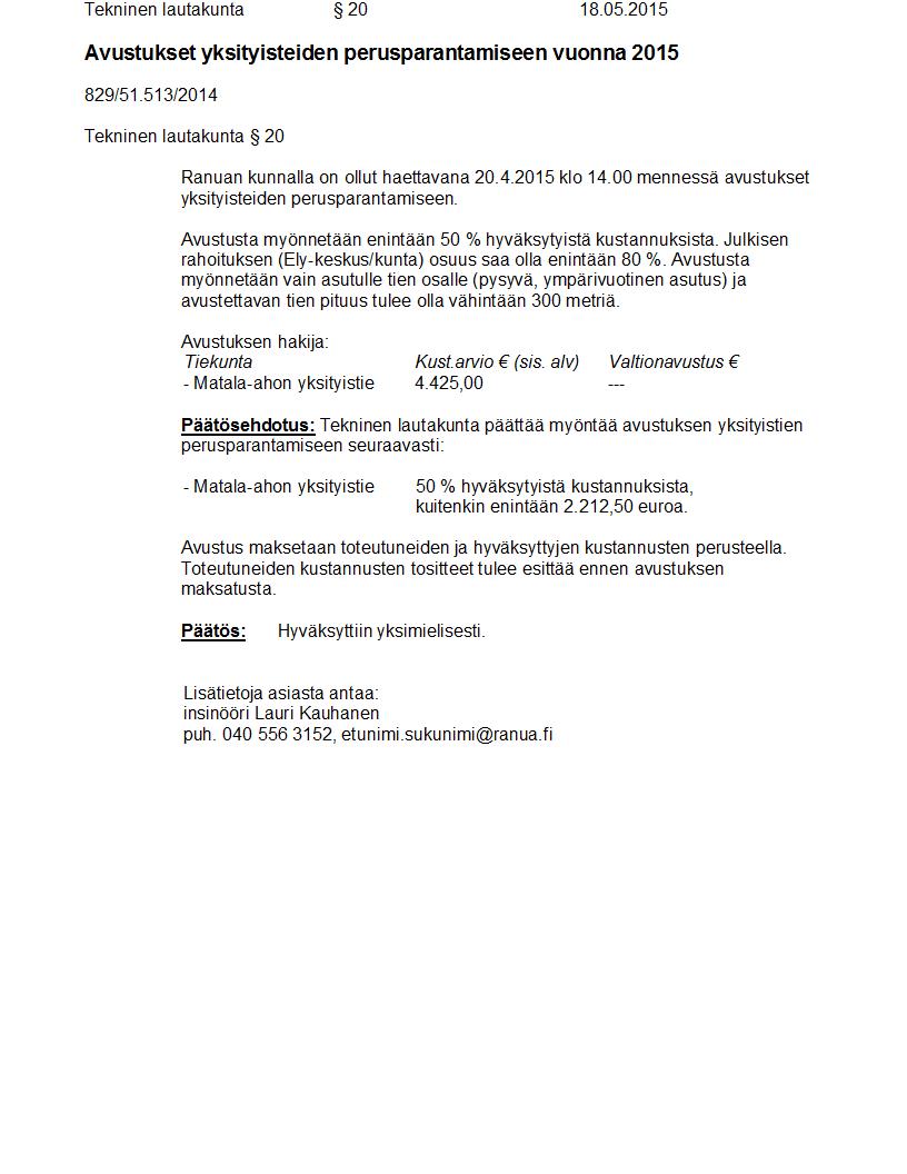 Pöytäkirja 18.05.2015 Pykälä 20