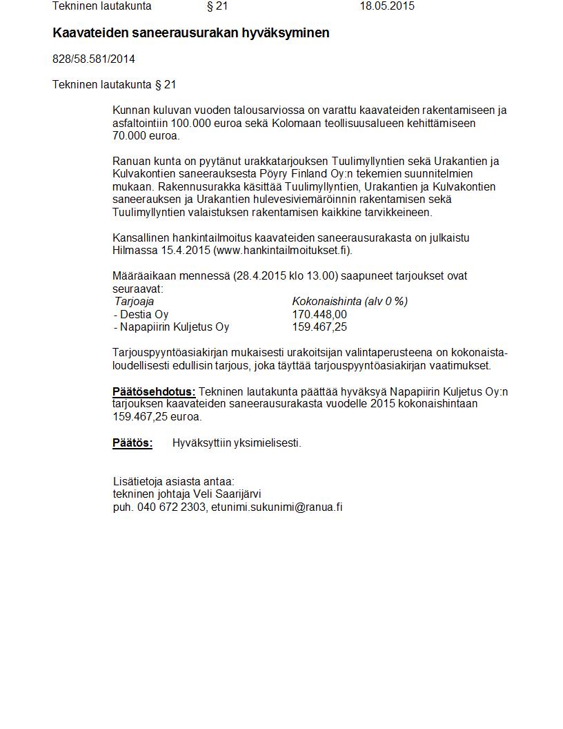 Pöytäkirja 18.05.2015 Pykälä 21