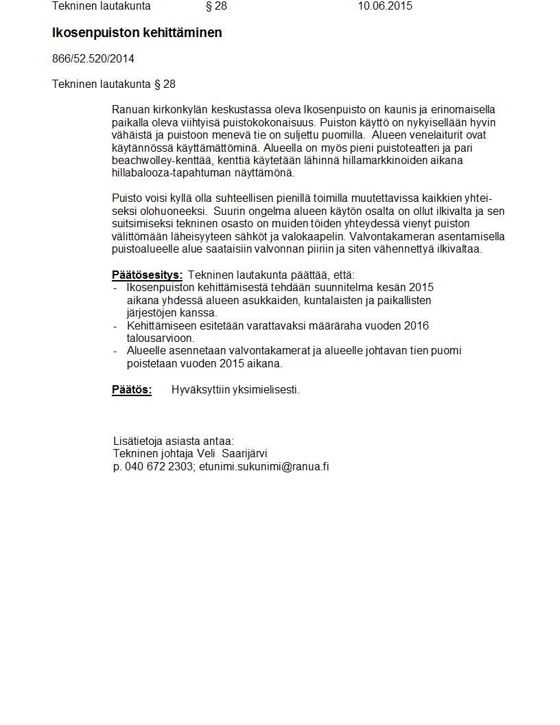 Pöytäkirja 10.06.2015 Pykälä 28