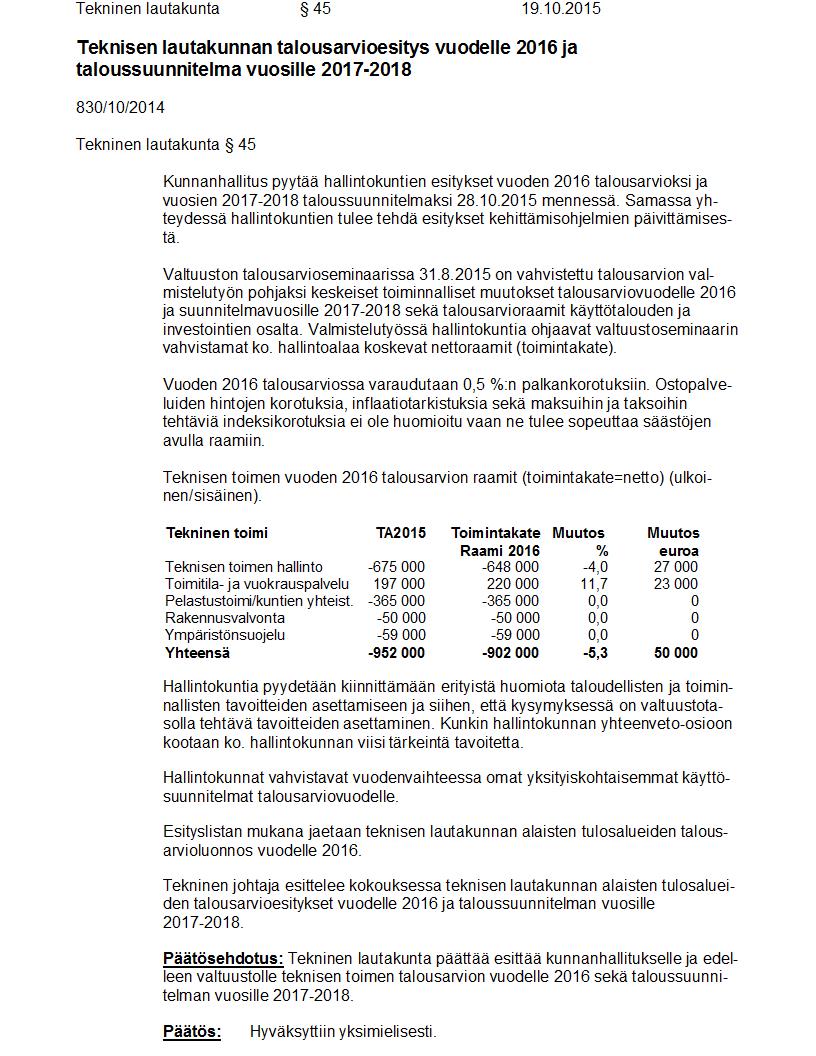 Pöytäkirja 19.10.2015 Pykälä 45