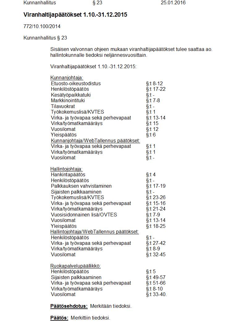 Pöytäkirja 25.01.2016 Pykälä 23