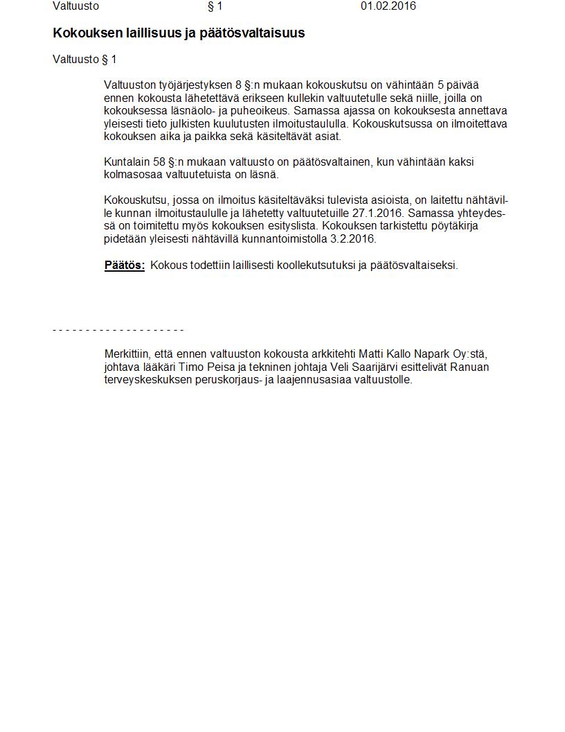 Pöytäkirja 01.02.2016 Pykälä 1