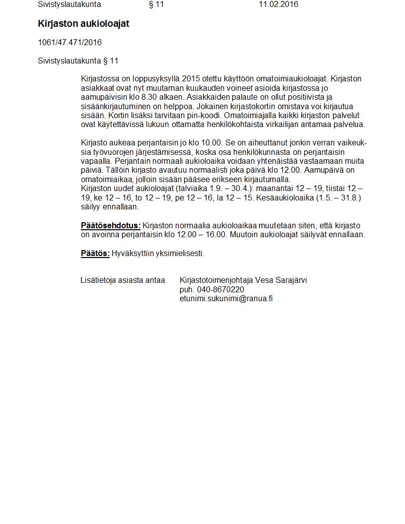 Pöytäkirja 11.02.2016 Pykälä 11