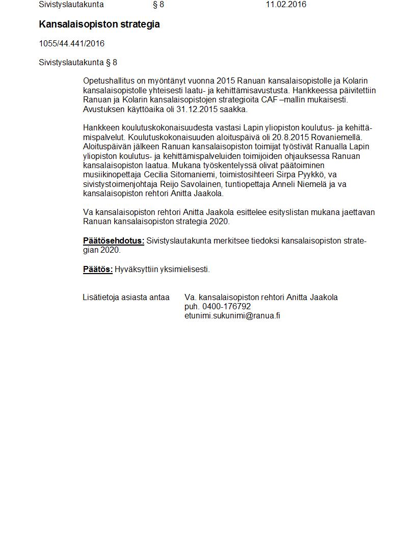Pöytäkirja 11.02.2016 Pykälä 8