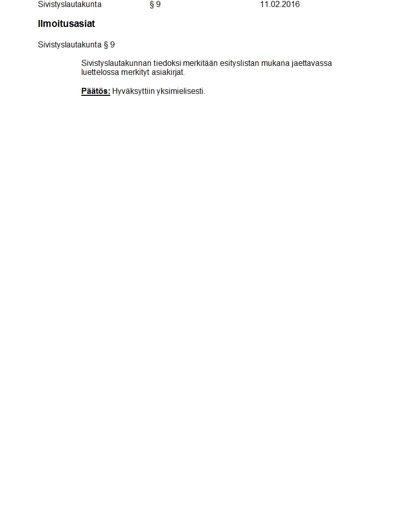 Pöytäkirja 11.02.2016 Pykälä 9