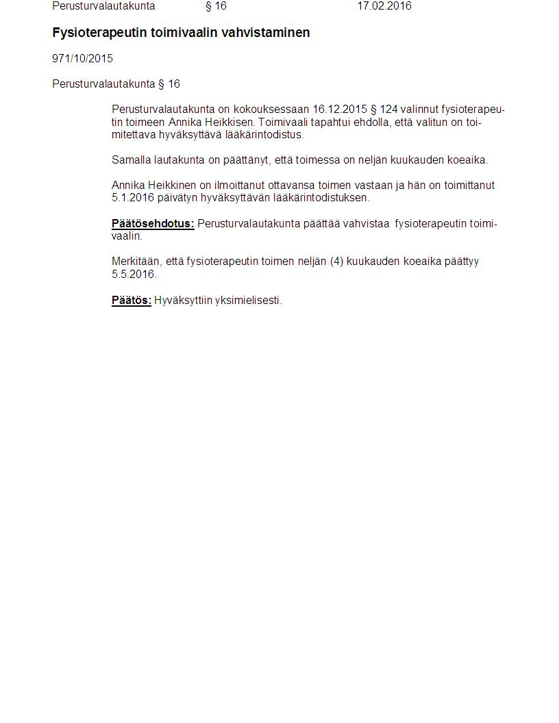 Pöytäkirja 17.02.2016 Pykälä 16