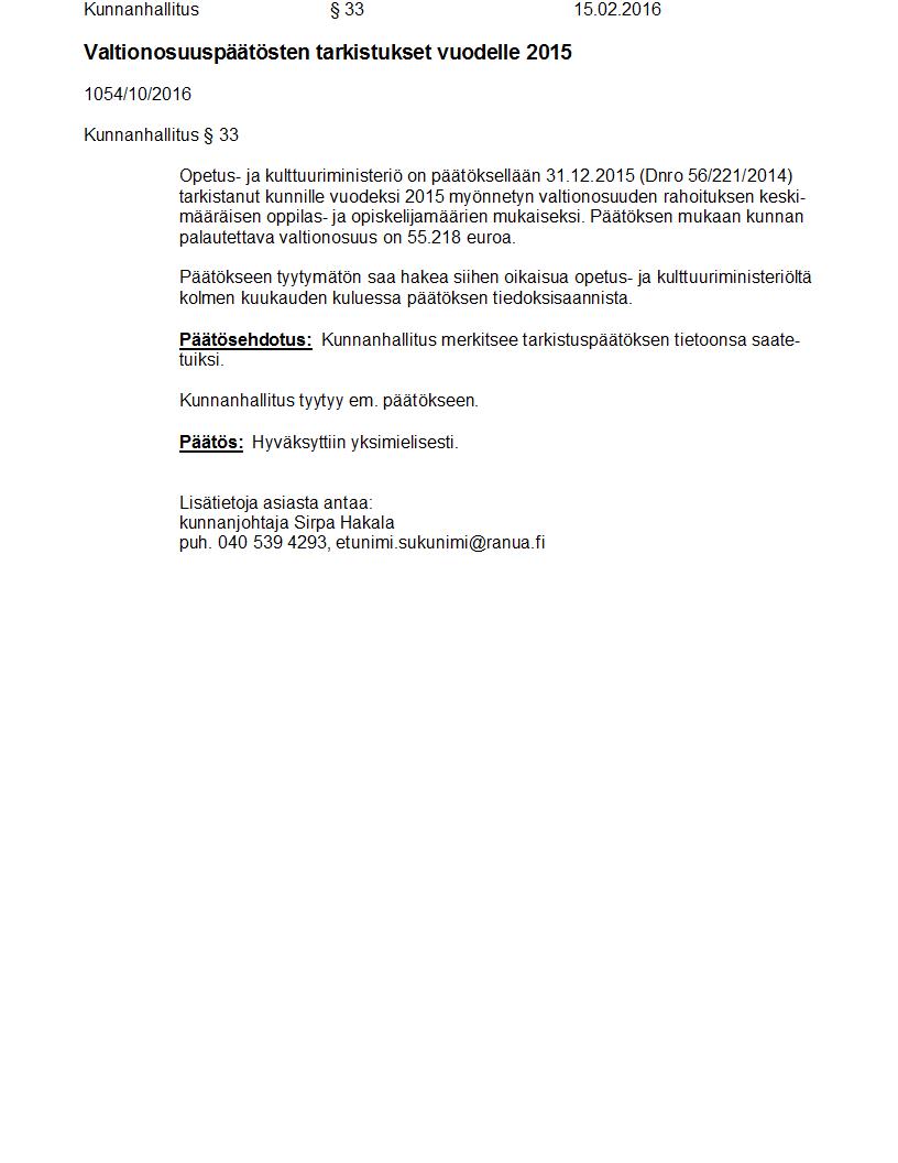 Pöytäkirja 15.02.2016 Pykälä 33