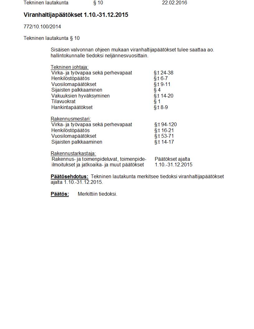 Pöytäkirja 22.02.2016 Pykälä 10
