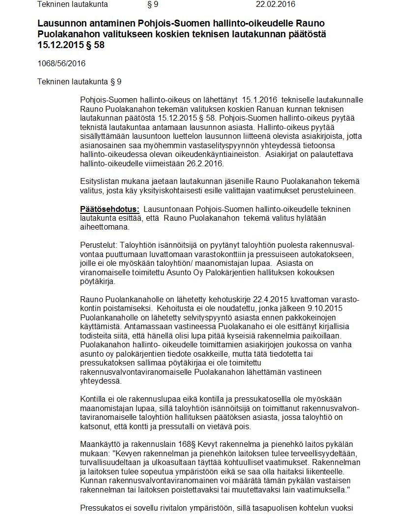 Pöytäkirja 22.02.2016 Pykälä 9