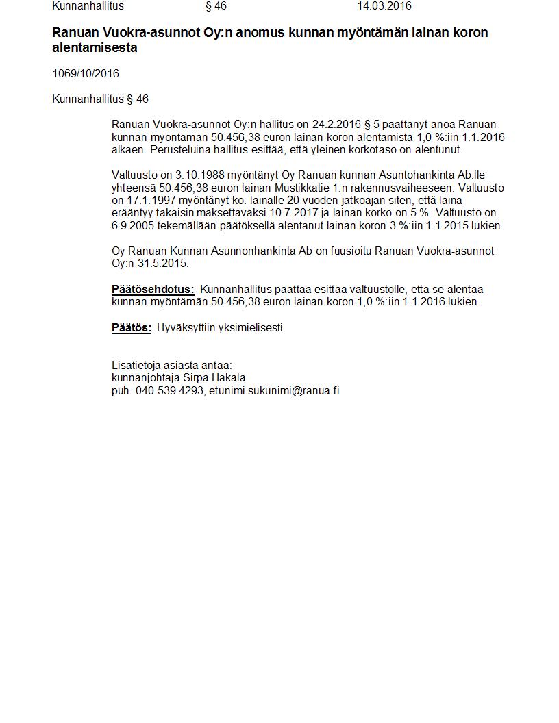 Pöytäkirja 14.03.2016 Pykälä 46