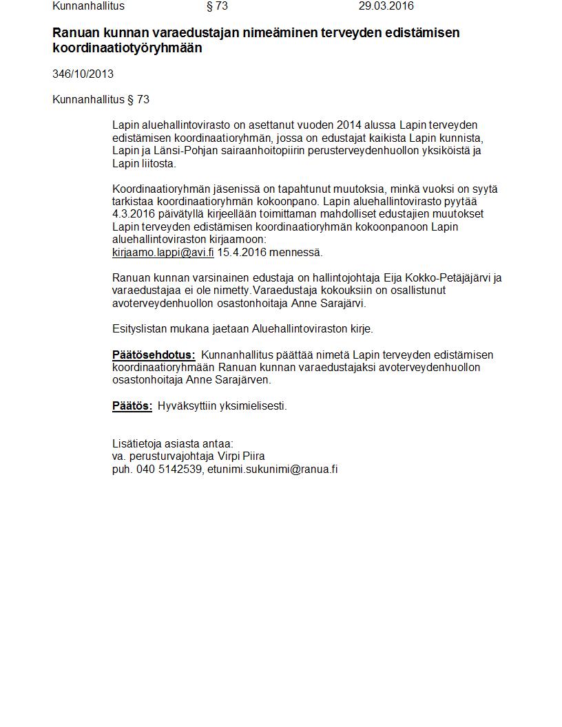 Pöytäkirja 29.03.2016 Pykälä 73