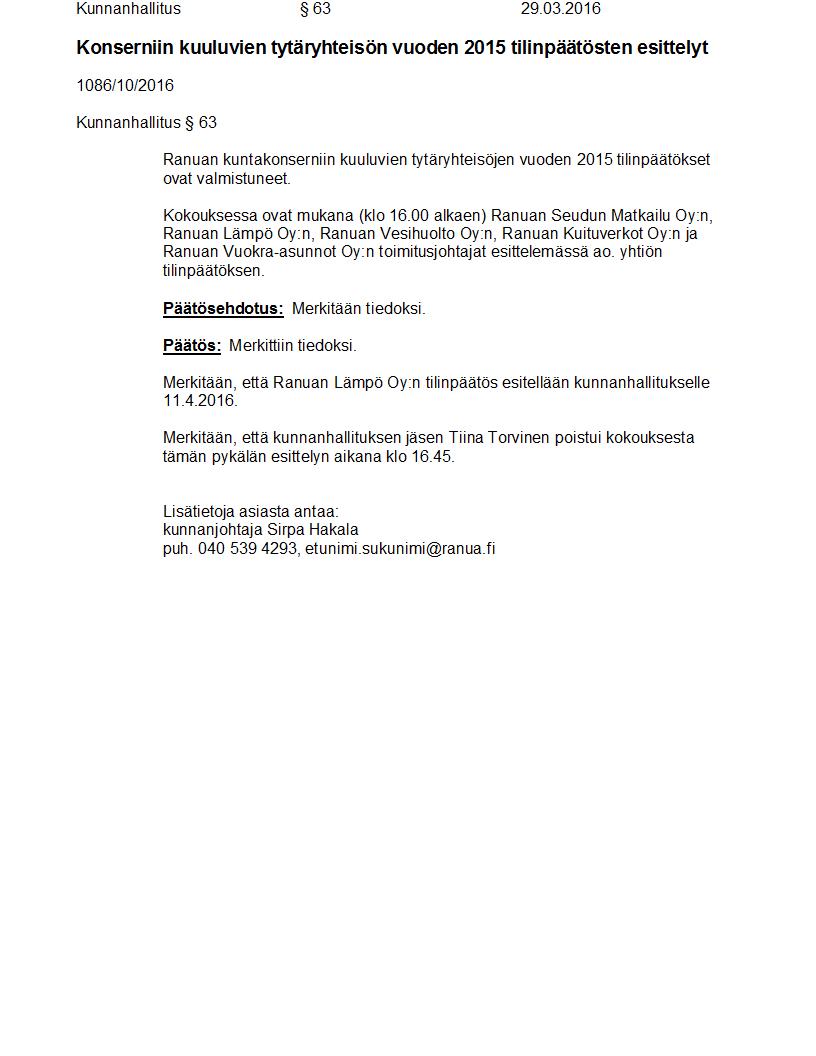 Pöytäkirja 29.03.2016 Pykälä 63