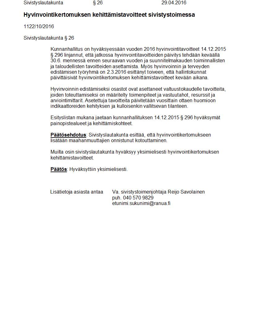 Pöytäkirja 29.04.2016 Pykälä 26