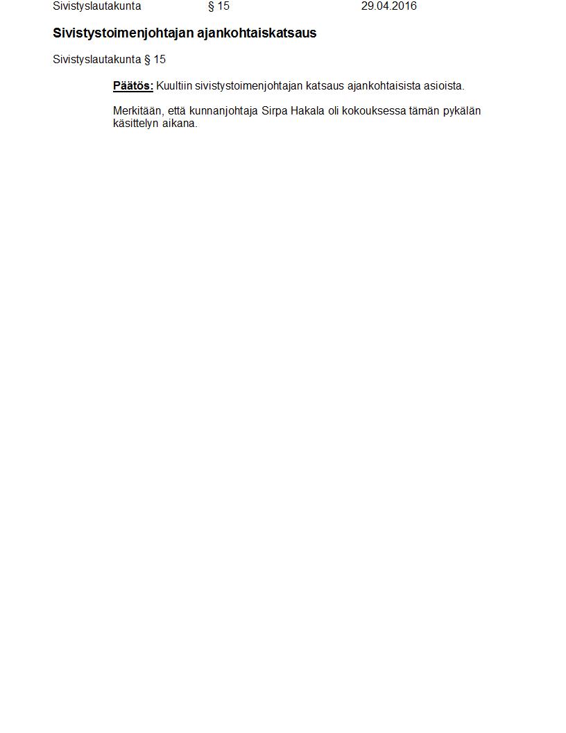 Pöytäkirja 29.04.2016 Pykälä 15