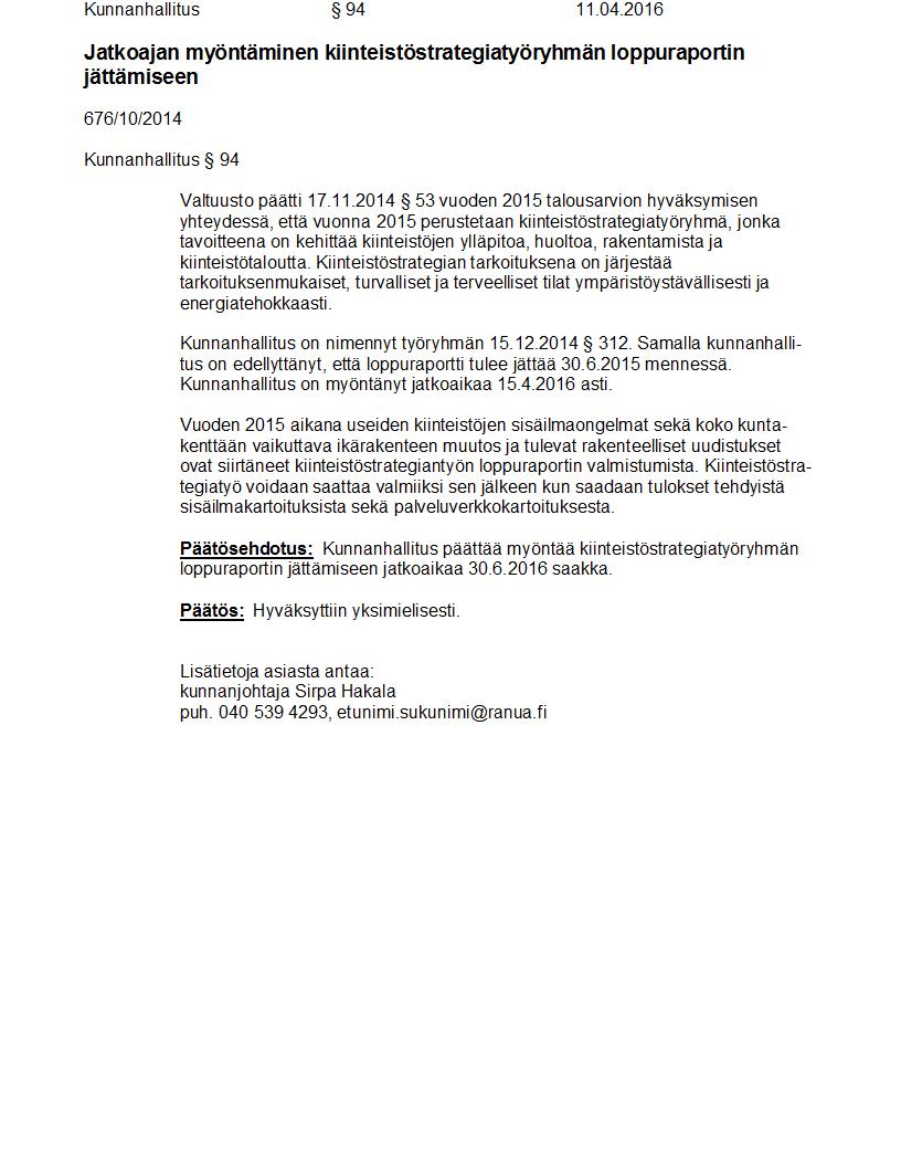 Pöytäkirja 11.04.2016 Pykälä 94