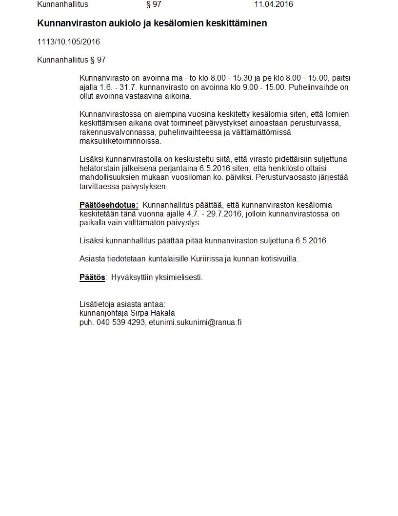Pöytäkirja 11.04.2016 Pykälä 97
