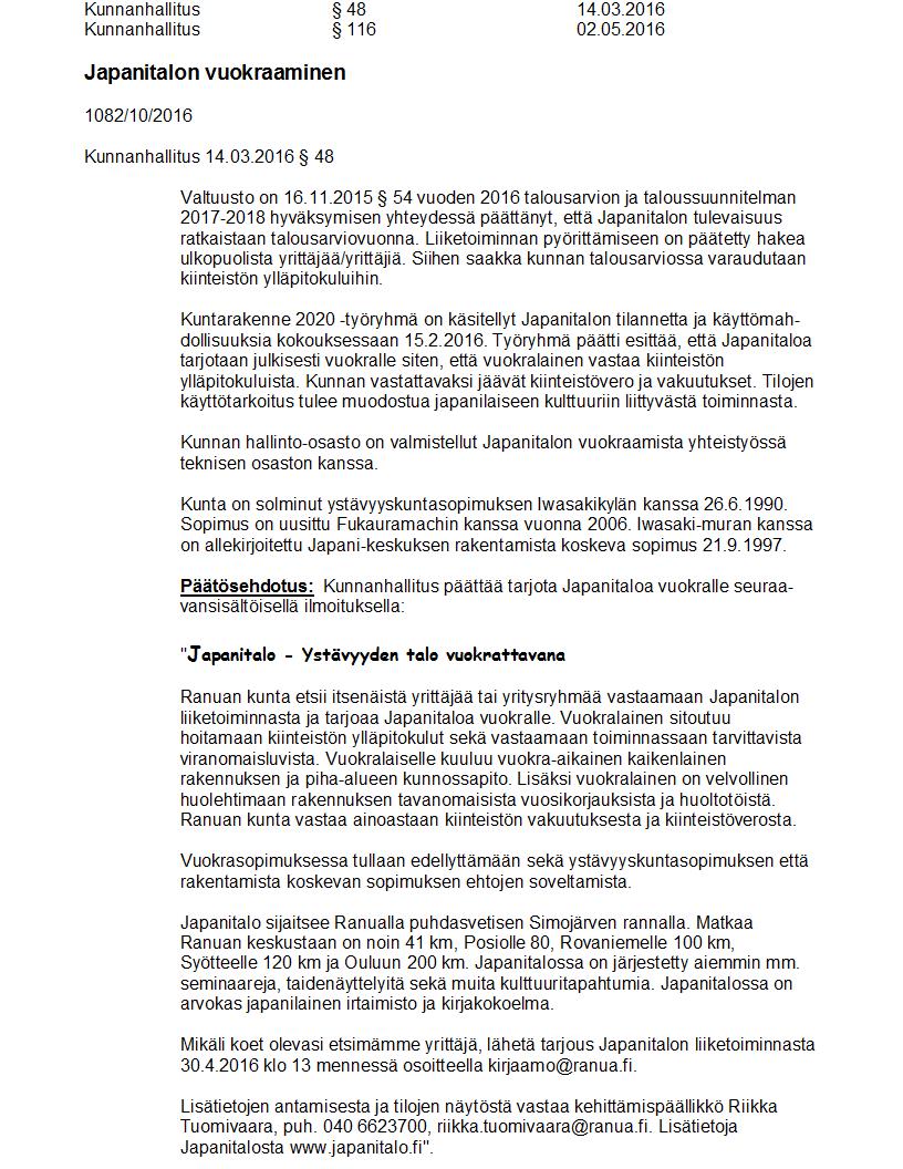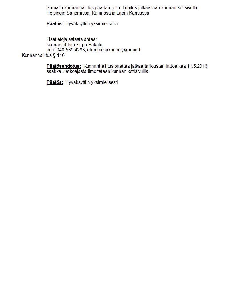 Pöytäkirja 02.05.2016 Pykälä 116