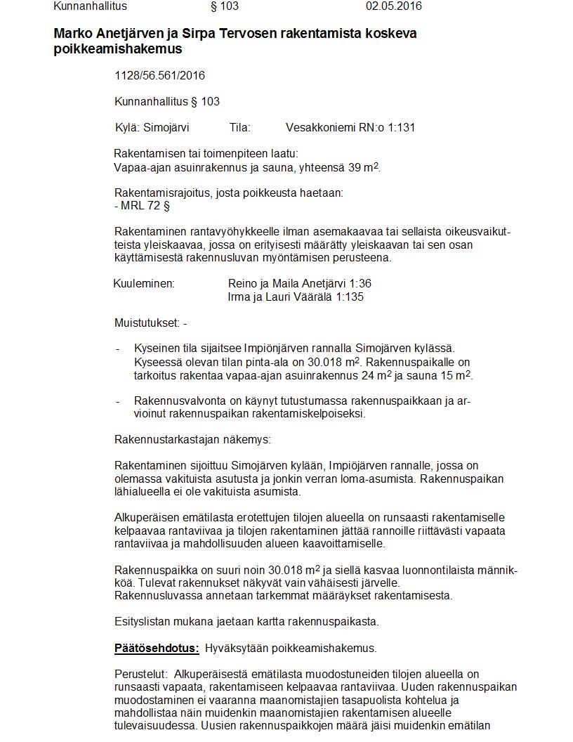 Pöytäkirja 02.05.2016 Pykälä 103