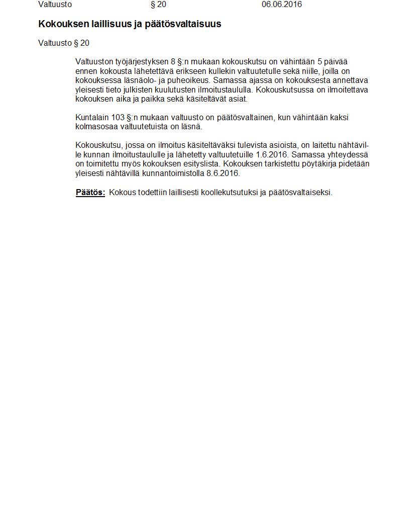 Pöytäkirja 06.06.2016 Pykälä 20