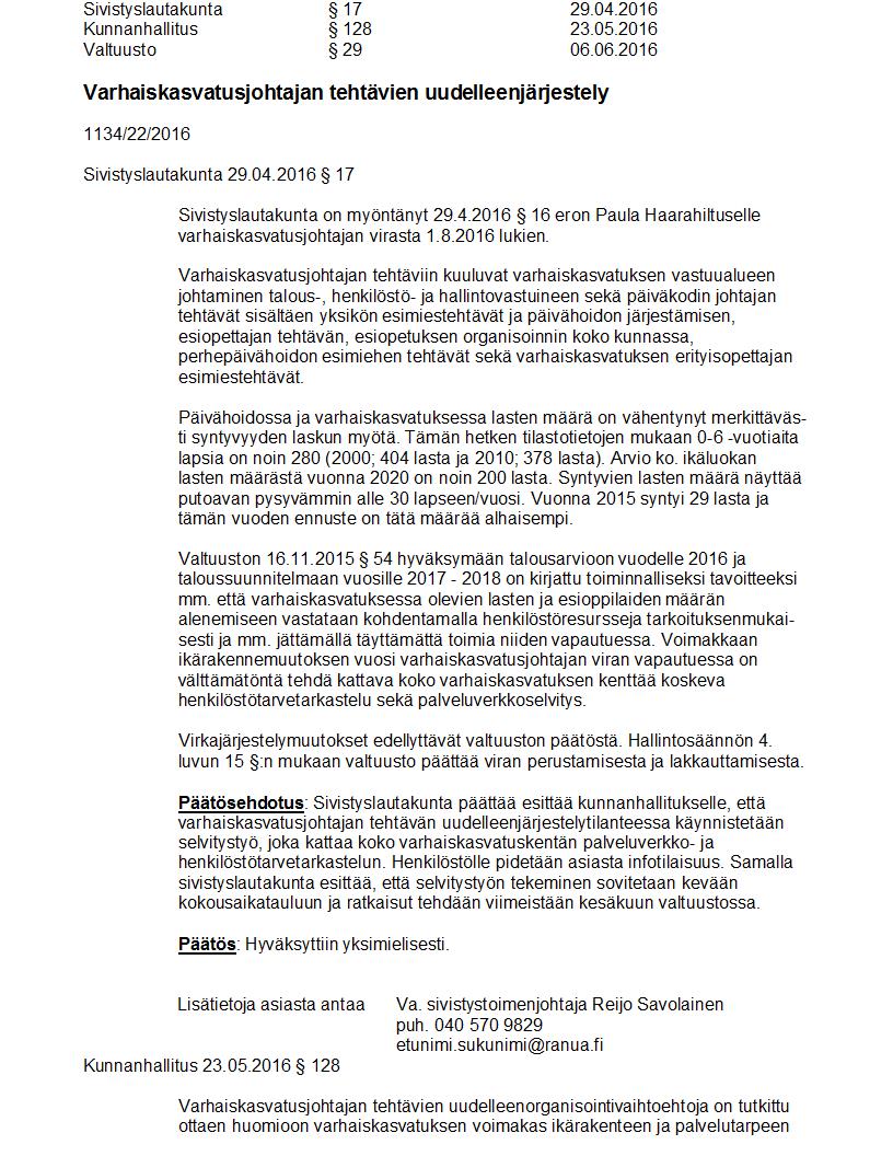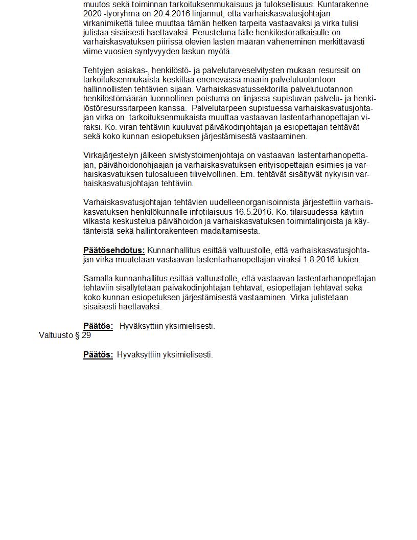 Pöytäkirja 06.06.2016 Pykälä 29