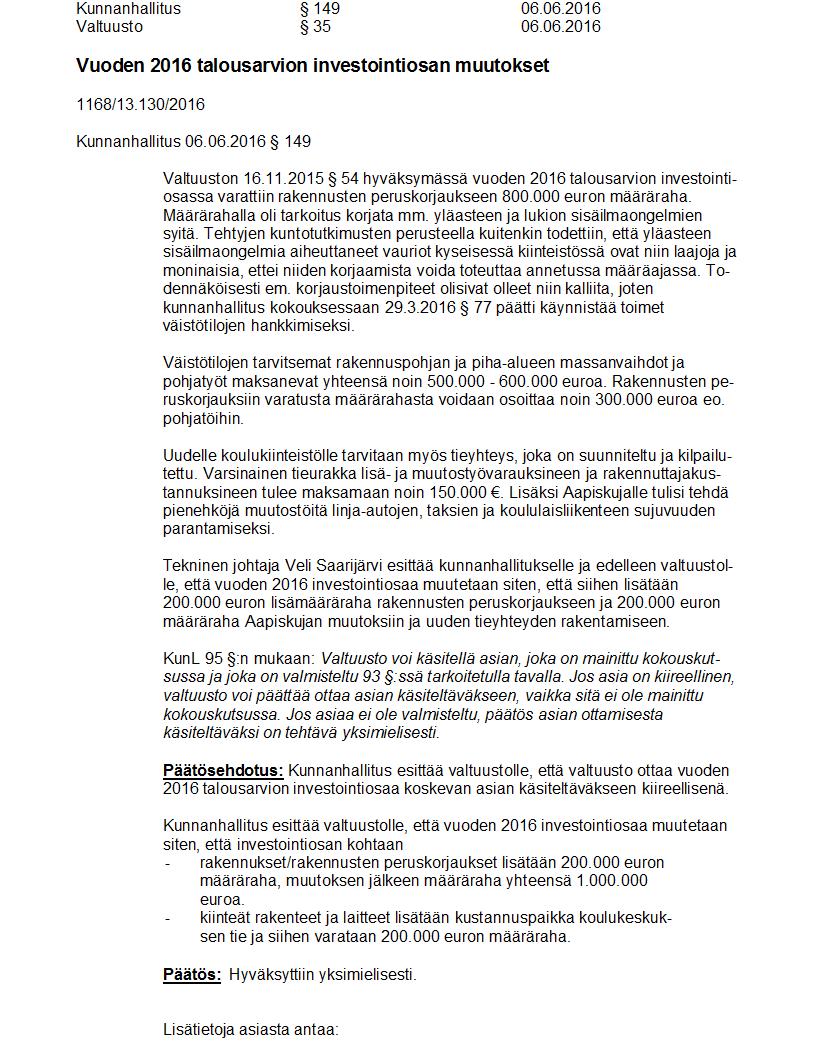 Pöytäkirja 06.06.2016 Pykälä 35
