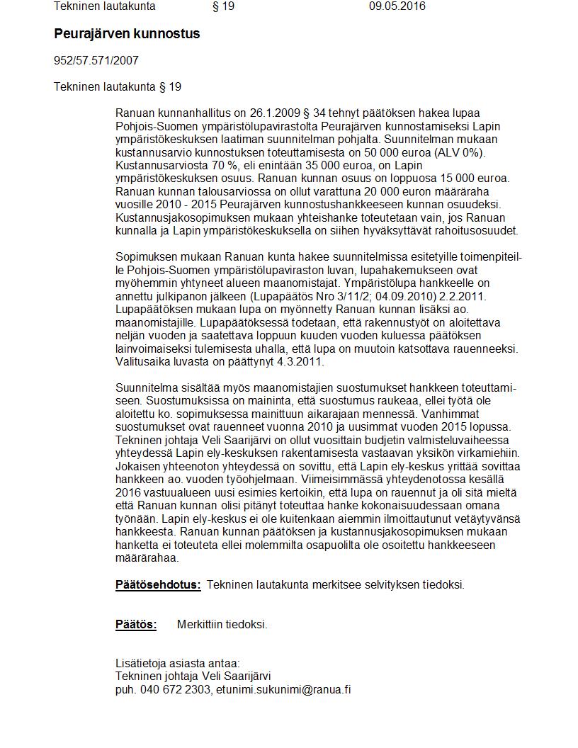 Pöytäkirja 09.05.2016 Pykälä 19