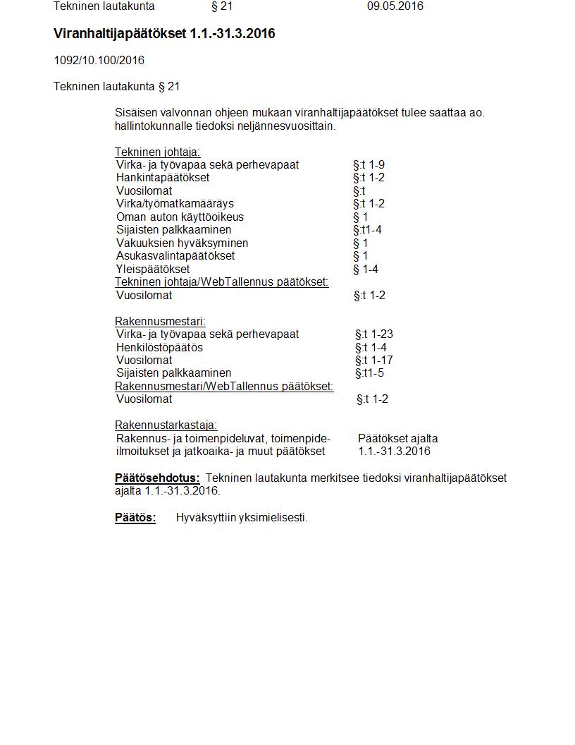 Pöytäkirja 09.05.2016 Pykälä 21
