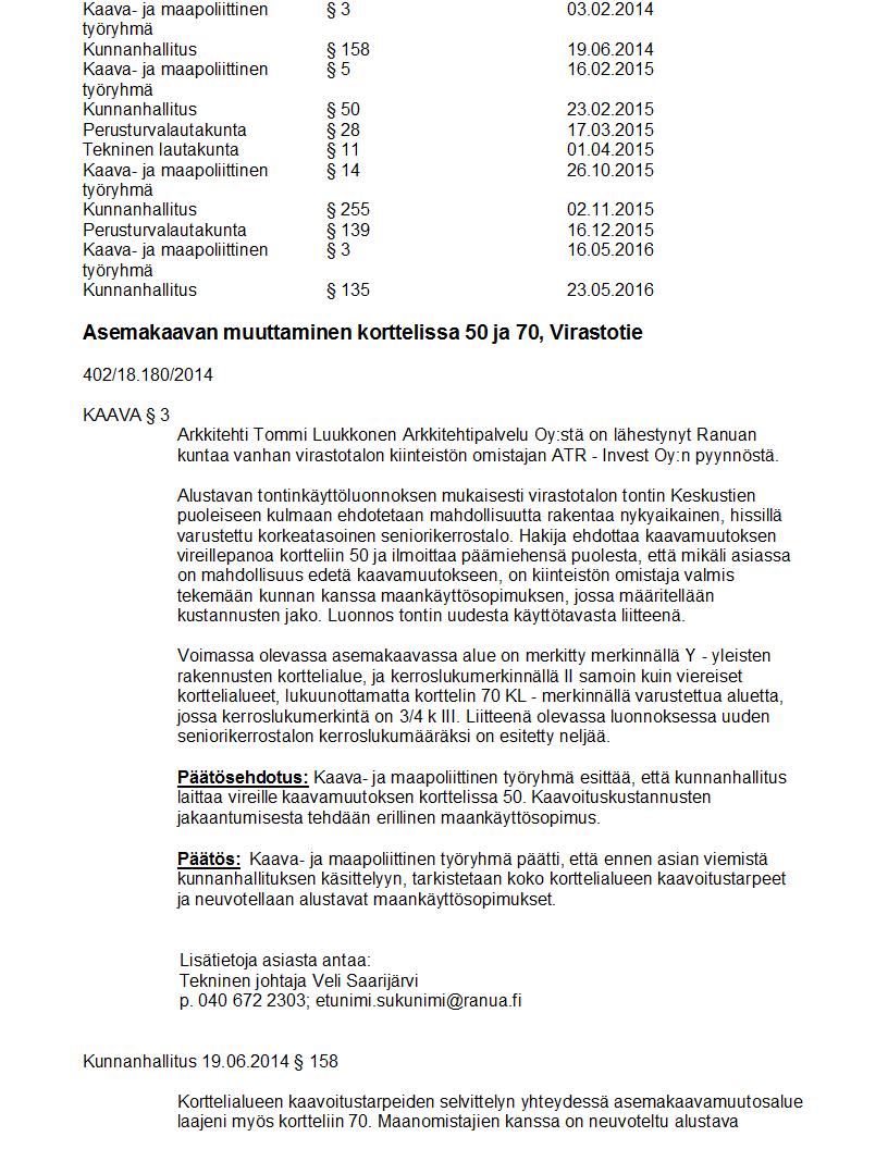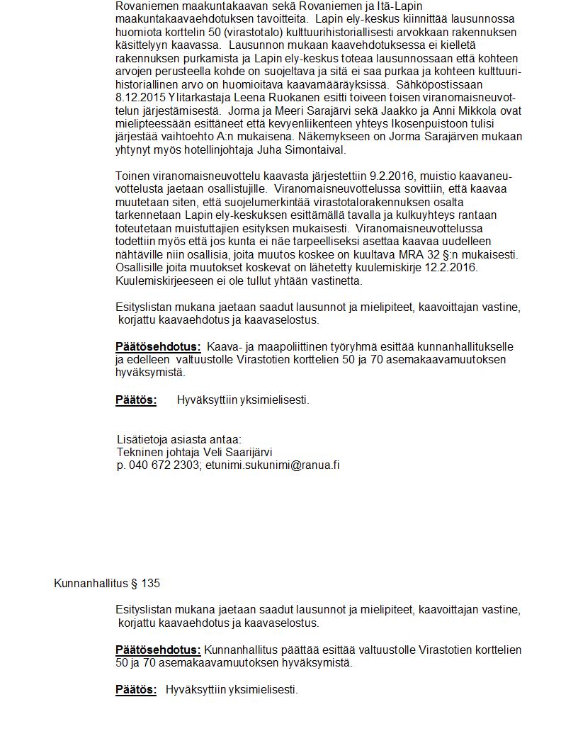 Pöytäkirja 23.05.2016 Pykälä 135