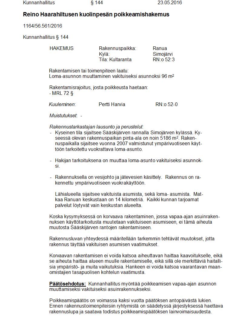 Pöytäkirja 23.05.2016 Pykälä 144