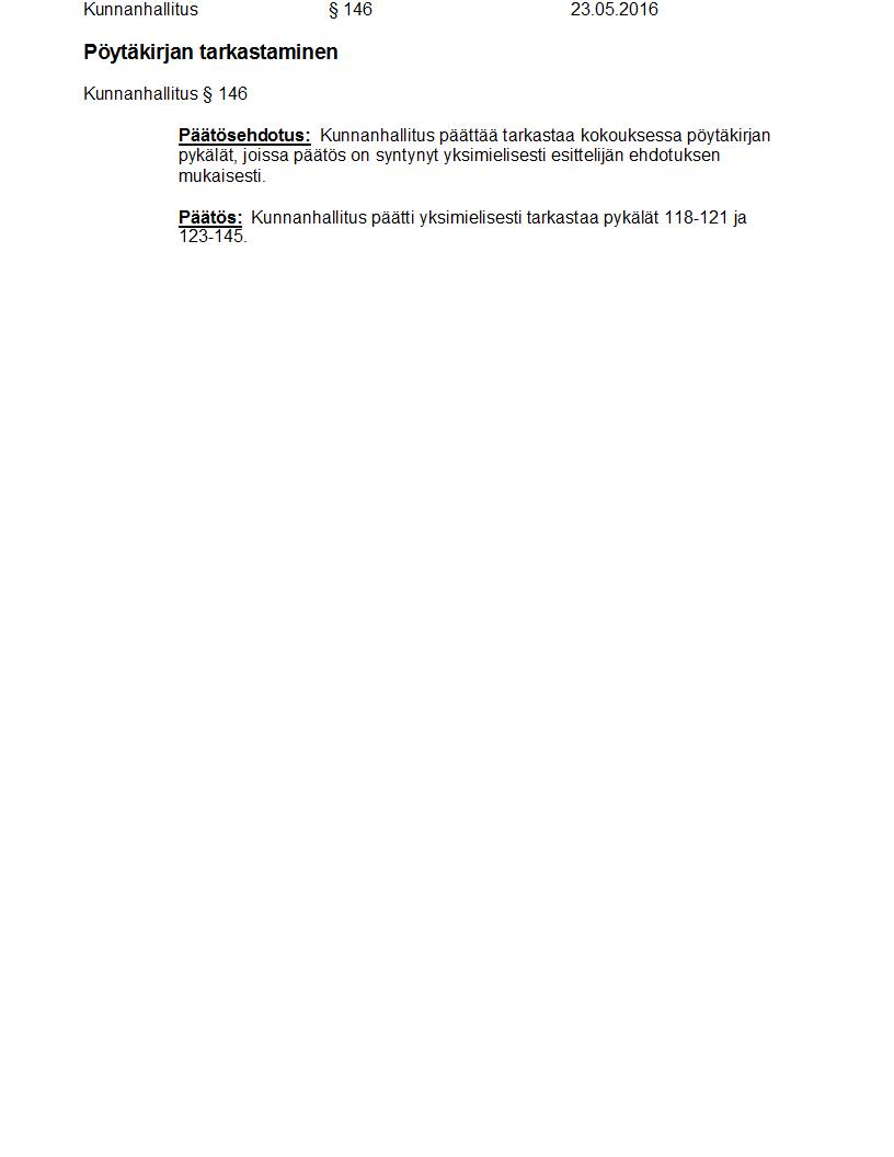 Pöytäkirja 23.05.2016 Pykälä 146