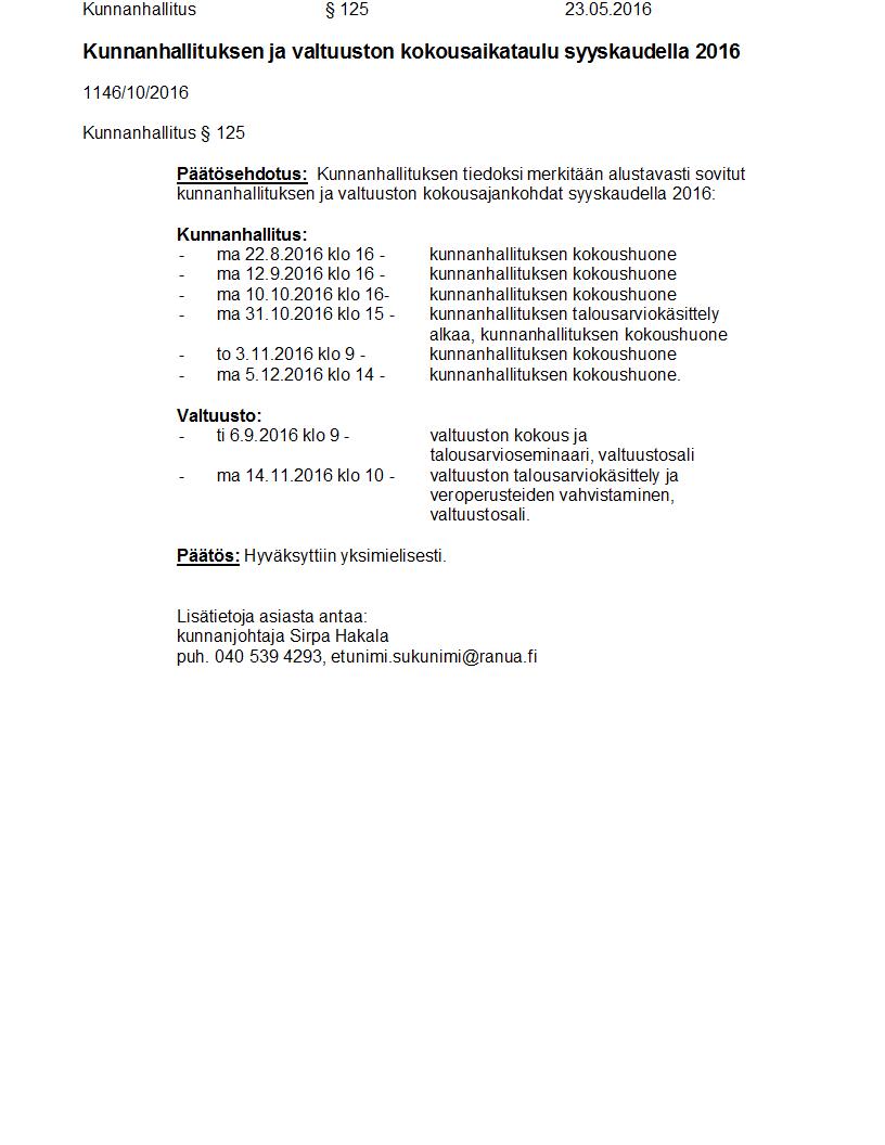Pöytäkirja 23.05.2016 Pykälä 125