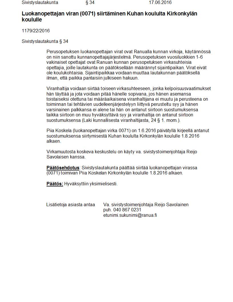 Pöytäkirja 17.06.2016 Pykälä 34