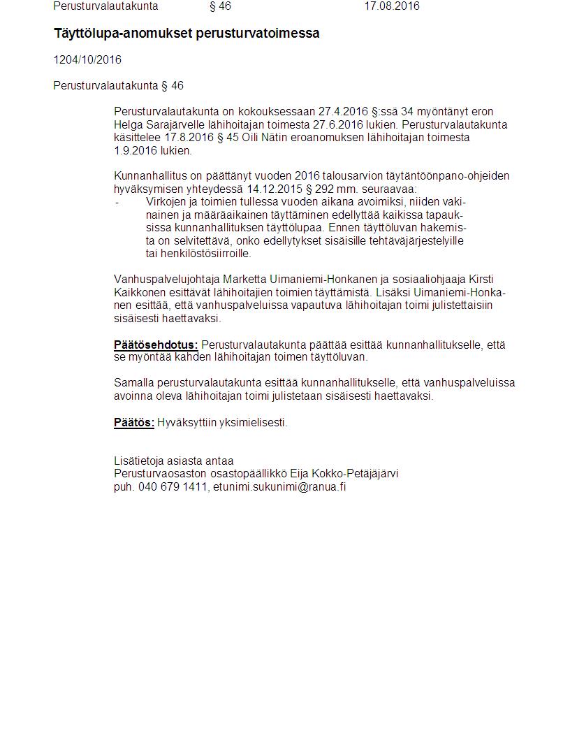 Pöytäkirja 17.08.2016 Pykälä 46
