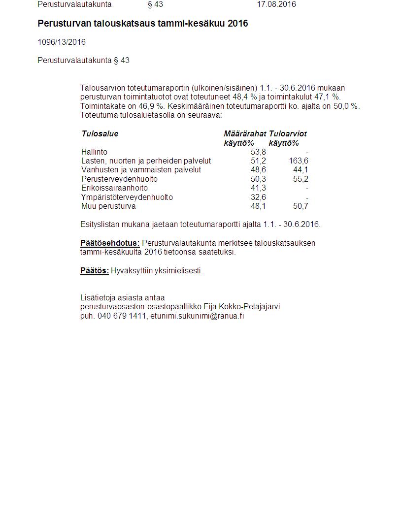 Pöytäkirja 17.08.2016 Pykälä 43
