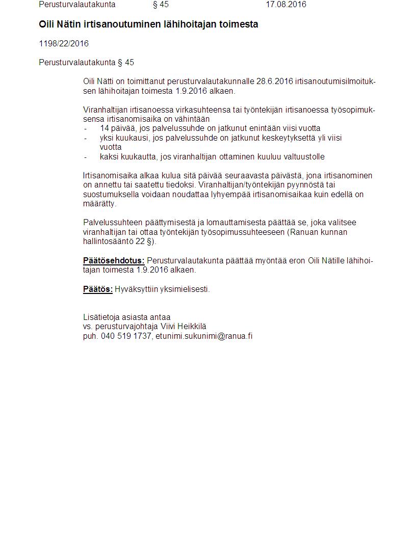 Pöytäkirja 17.08.2016 Pykälä 45