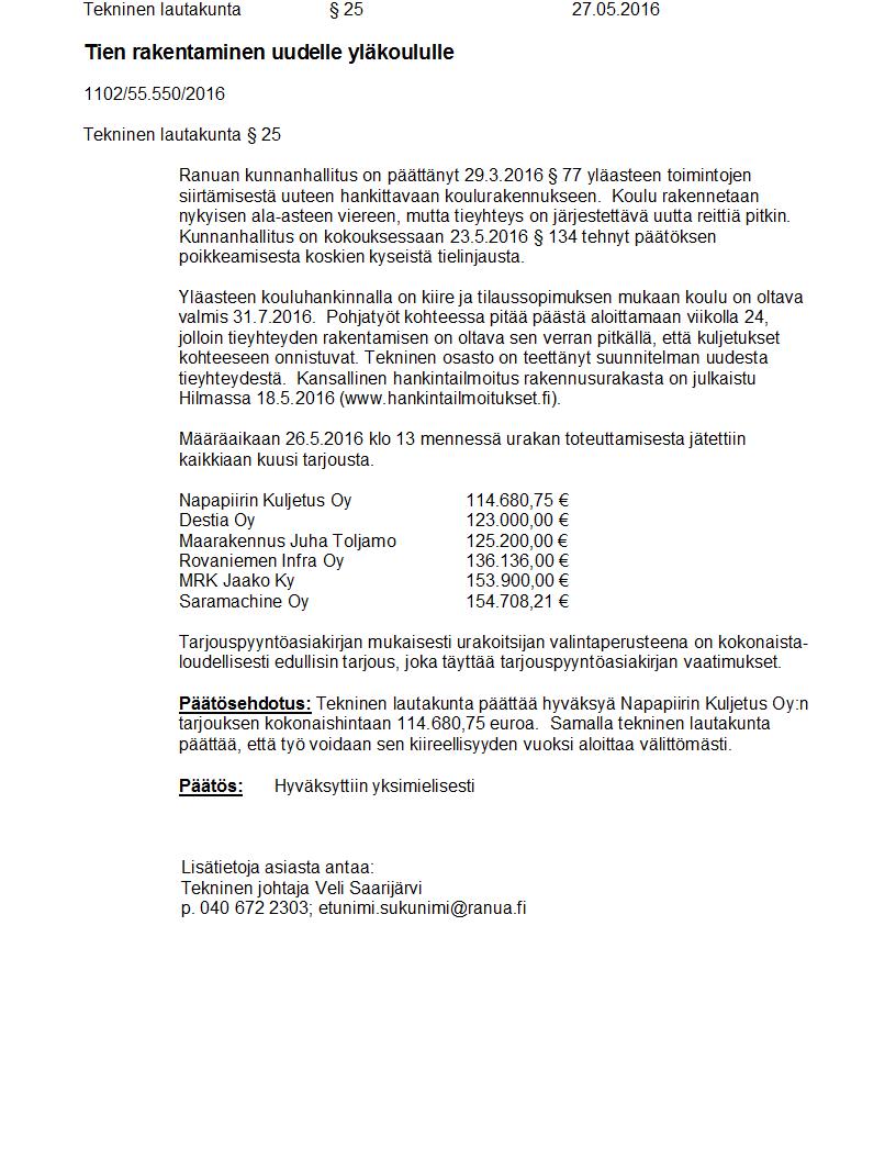 Pöytäkirja 27.05.2016 Pykälä 25