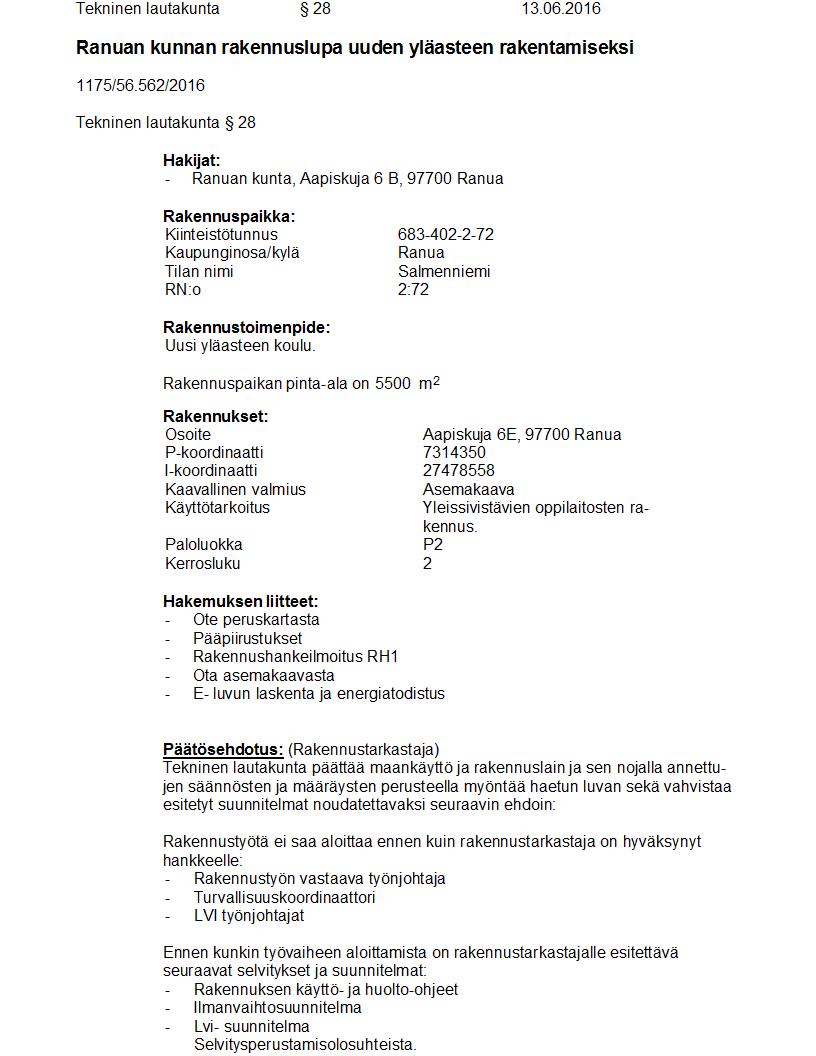 Pöytäkirja 13.06.2016 Pykälä 28