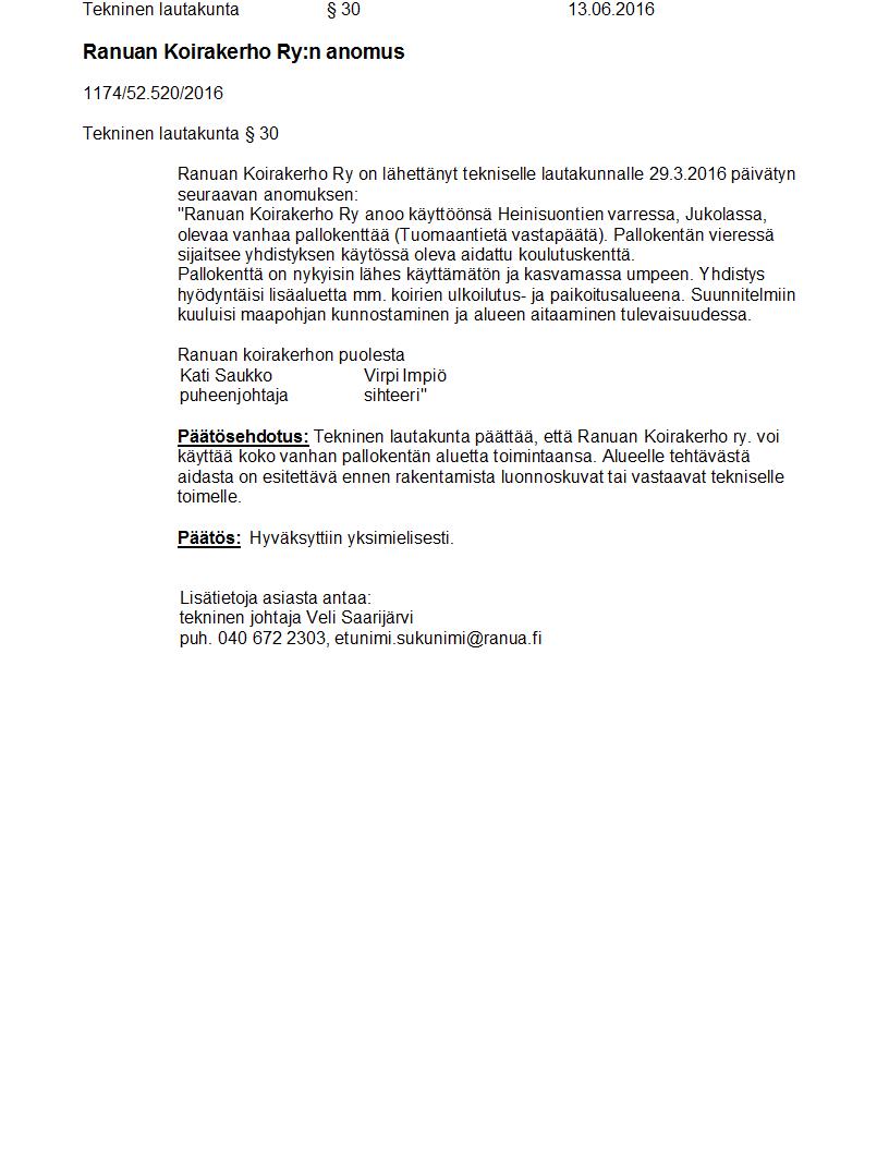 Pöytäkirja 13.06.2016 Pykälä 30